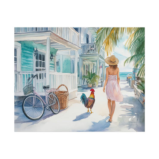 Caribbean Key West Rooster Watercolor Print – Coastal Boho Wall Art