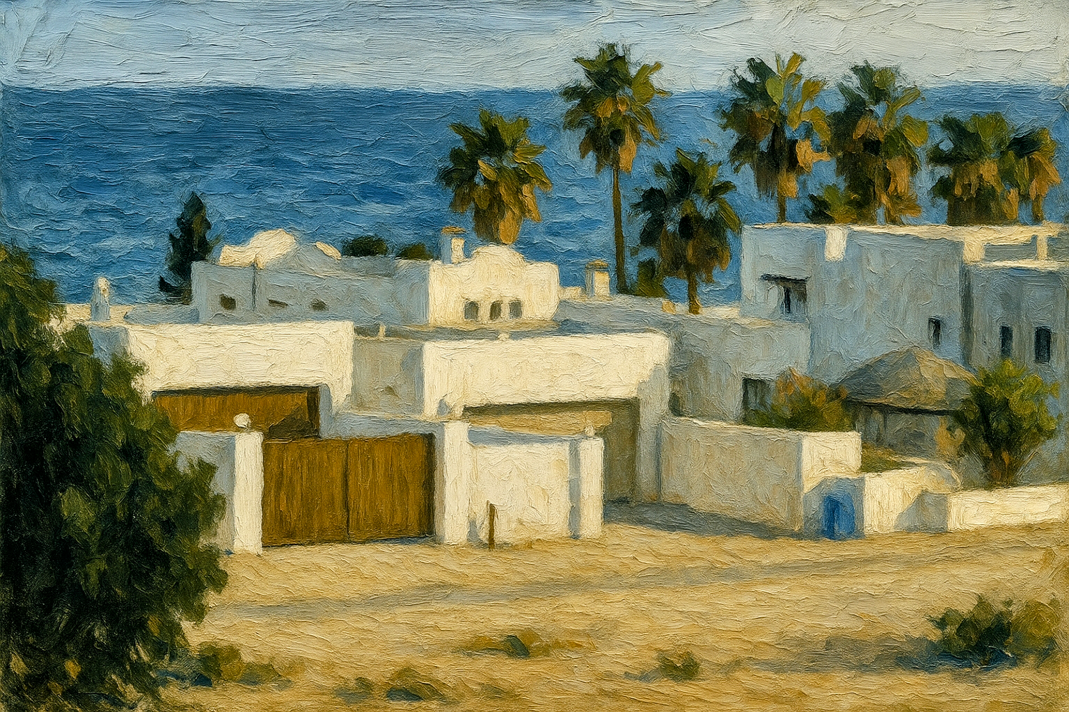 Featuring the iconic whitewashed homes, swaying palms, and deep blue waters of the Sea of Cortez, this artwork invites you into the relaxed beauty of seaside living. Every brushstroke effect enhances the sunlit textures and coastal atmosphere, making it an ideal statement piece for beach lovers, travelers, and those drawn to authentic, place-inspired art.